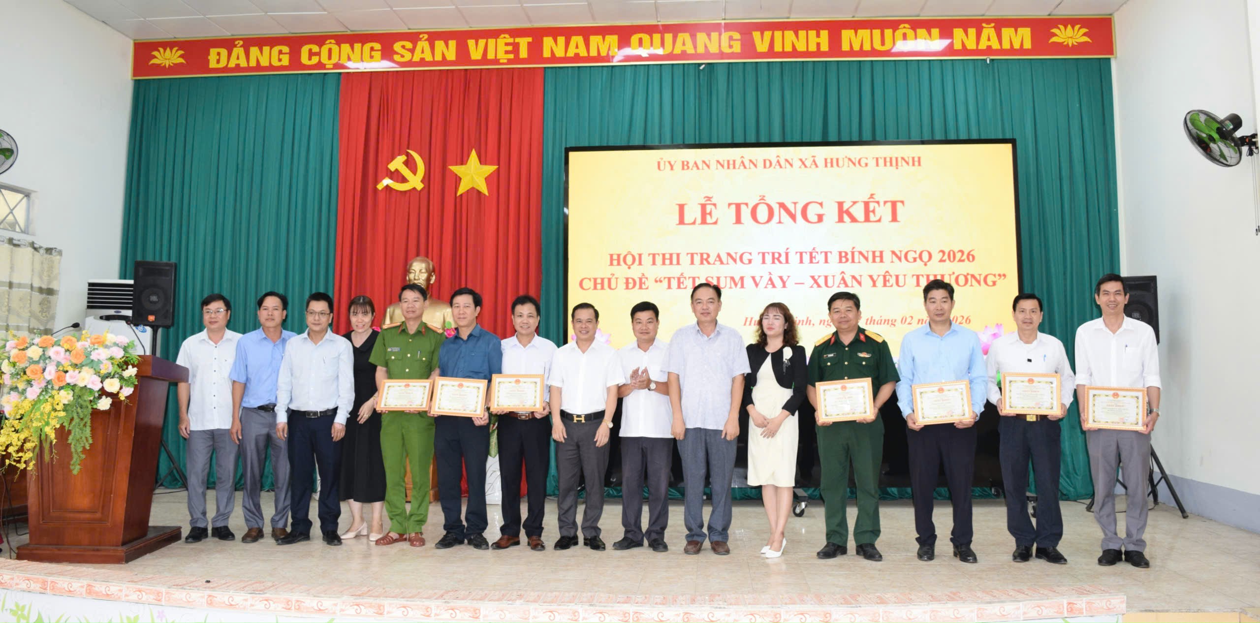 Ngày 27/02/2026, xã Hưng Thịnh tổ chức tổng kết Hội thi trang trí Tết Bính Ngọ năm 2026 với chủ đề “Tết sum vầy – Xuân yêu thương”.