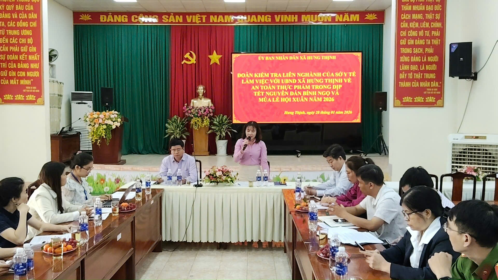 Ngày 28/1, Đoàn kiểm tra liên ngành công tác an toàn thực phẩm Sở y tế Đồng Nai do đồng chí Nguyễn Đình Việt phó trưởng phòng kiểm tra vệ sinh an toàn thực phẩm làm Trưởng đoàn đã có buổi làm việc với xã Hưng Thịnh về an toàn thực phẩm trong dịp Tết Nguyên đán Bính Ngọ và mùa Lễ hội Xuân năm 2026.