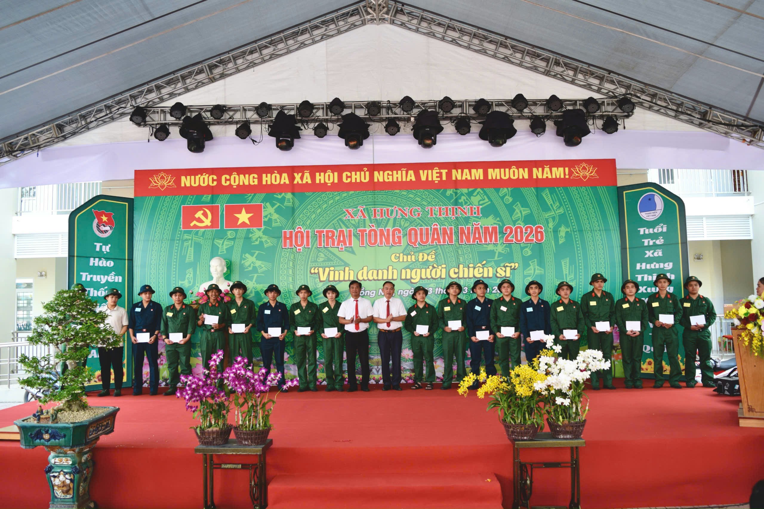 Chiều ngày 03/3/2026, UBND xã Hưng Thịnh tổ chức Lễ khai mạc Hội trại Tòng quân năm 2026. Hoạt động nhằm động viên thanh niên trước khi lên đường thực hiện nghĩa vụ quân sự, đồng thời thể hiện sự quan tâm của cấp ủy, chính quyền và nhân dân địa phương đối với công tác tuyển chọn, gọi công dân nhập ngũ. Tham dự buổi lễ có đại diện Thường trực Đảng ủy, HĐND, UBND, Ủy ban MTTQ Việt Nam xã; đại diện lãnh đạo các ban, ngành, đoàn thể; các đồng chí thành viên Ban Chỉ đạo Hội trại Tòng quân xã; bí thư chi bộ, trưởng ấp và Ban công tác Mặt trận các ấp cùng đông đảo đoàn viên, thanh niên và gia đình tân binh.