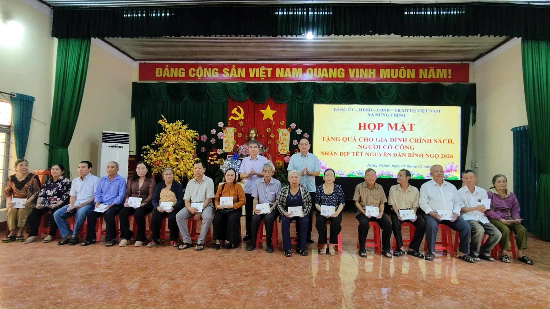 Tại chương trình, lãnh đạo xã Hưng Thịnh đã trao 186 phần quà của Chủ tịch nước cho Người có công trong dịp Tết Nguyên đán Bính Ngọ năm 2026; và trao 211 phần quà của HĐND tỉnh Đồng Nai về hỗ trợ Tết cho người có công trong dịp Tết Nguyên đán Bính Ngọ năm 2026.