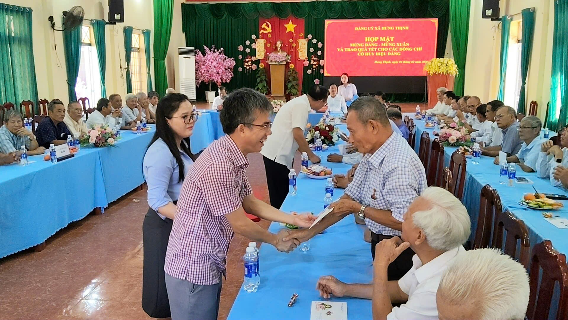 Tại buổi họp mặt, lãnh đạo xã Hưng Thịnh đã trao quà cho các đồng chí có huy hiệu từ 30 năm tuổi đảng trở lên; đồng thời ân cần thăm hỏi đời sống và chúc các đồng chí và gia đình đón Tết cổ truyền thật vui tươi, đầm ấm, mạnh khỏe, gia đình hạnh phúc. Mong muốn các gia đình tiếp tục chấp hành tốt đường lối, chính sách, pháp luật của Đảng và Nhà nước, gương mẫu đi đầu trong các phong trào thi đua tại địa phương, tích cực động viên con cháu lao động sản xuất, tạo ra nhiều của cải vật chất, góp phần nâng cao đời sống cho gia đình và làm giàu cho quê hương.
